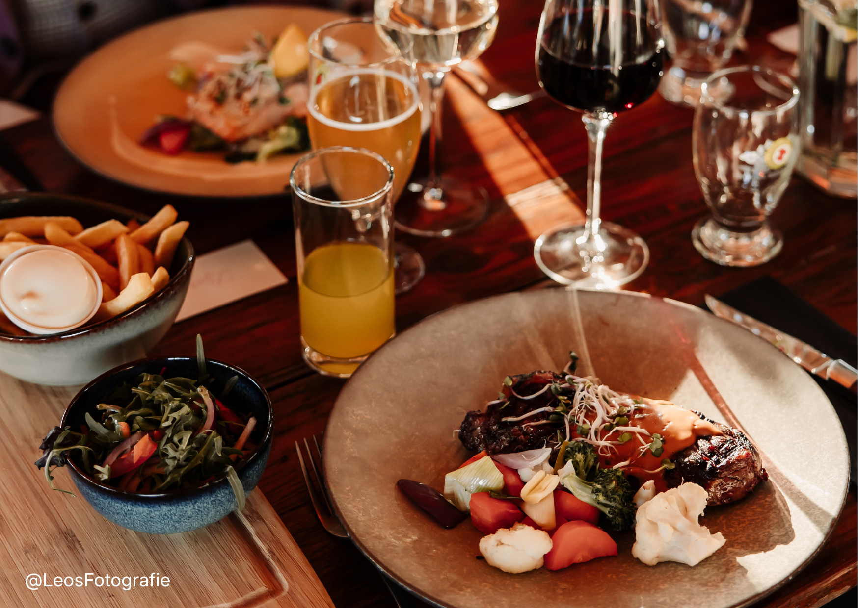 Alle hoofdgerechten worden geserveerd met friet en salade.